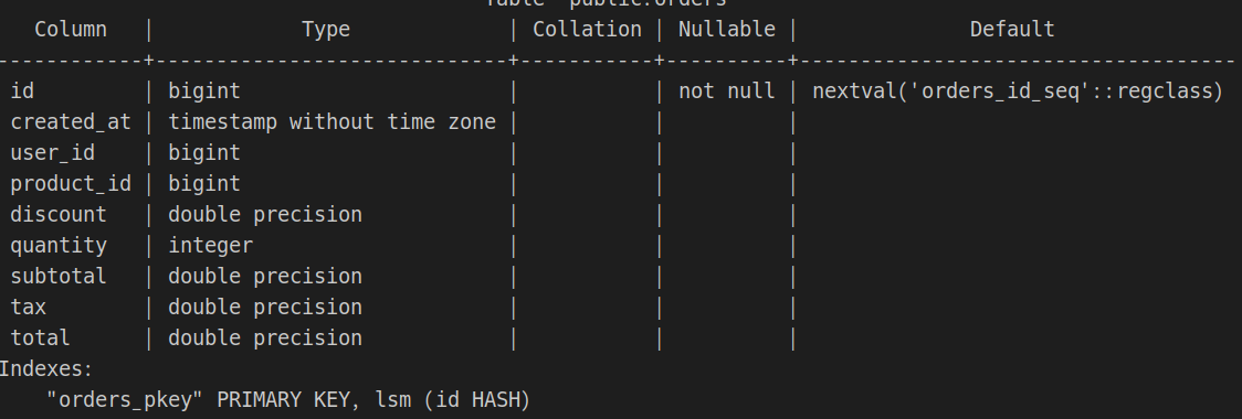 yb_demo=# \i share/orders.sql