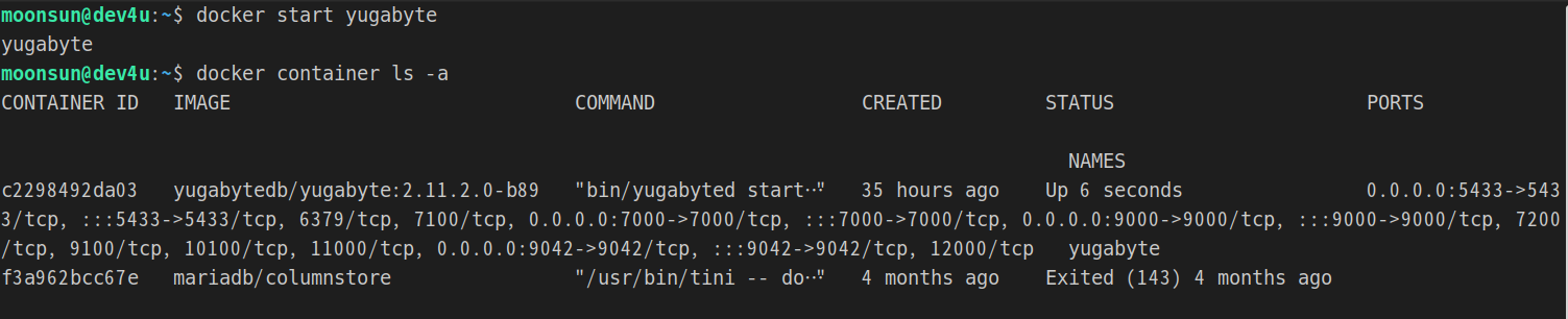 여기까지 해서 도커로 yugabyteDB를 실행해보았습니다.