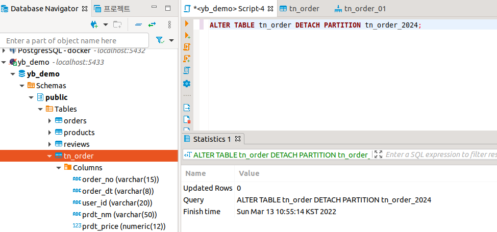 ALTER TABLE tn_order DETACH PARTITION tn_order_default