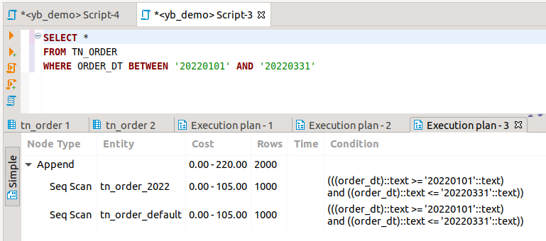 그리고 실행계획에서도 디폴트 파티션은 빠졌습니다.