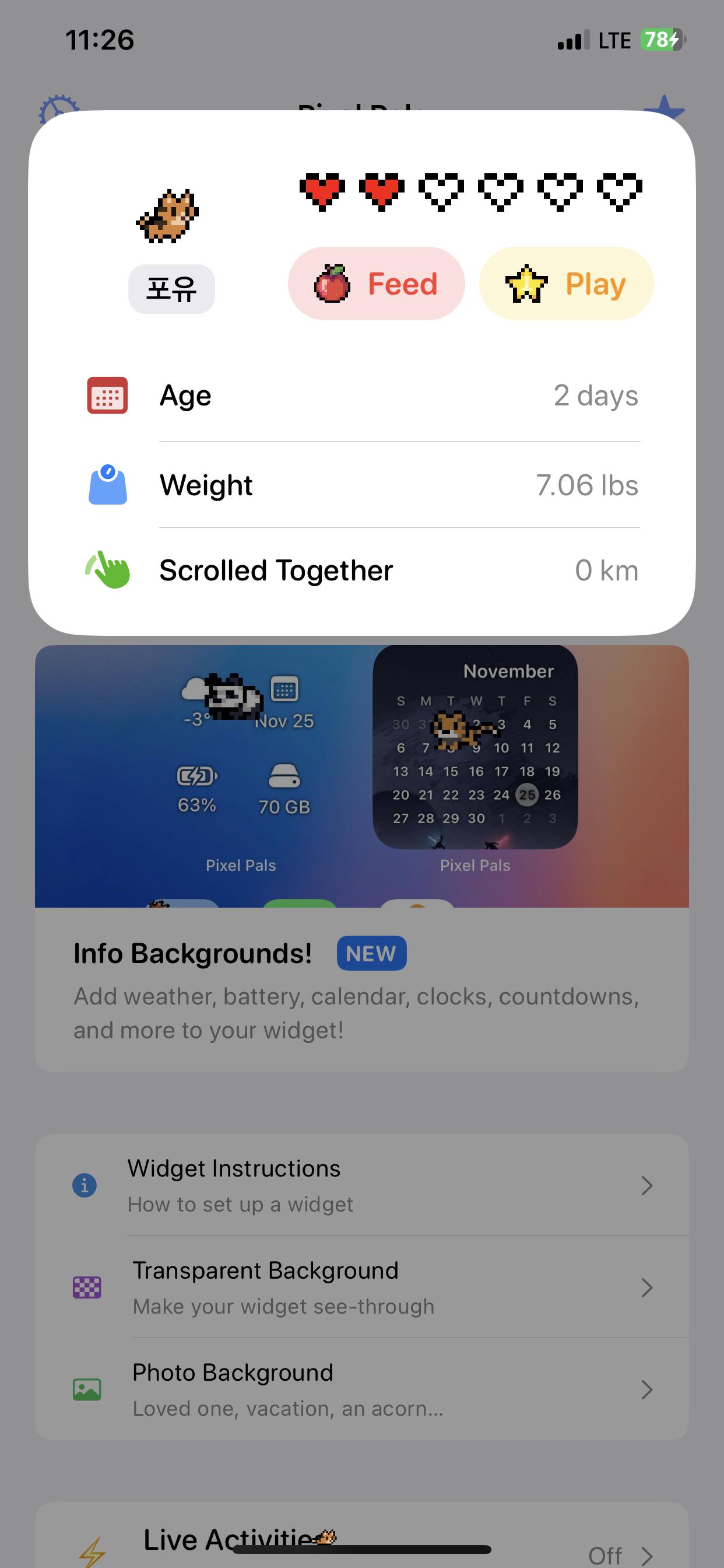 위젯에서 다마고치를 키울 수 있는 앱입니다.
