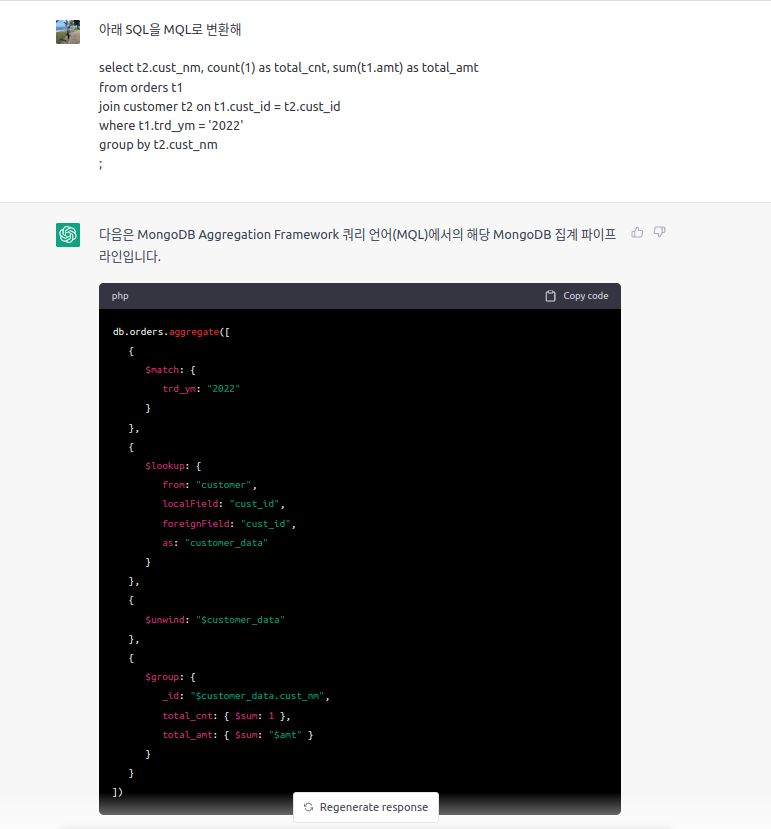 오늘 저녁 산책 도중에 갑자기 SQL을 MQL로 변화해 달라고 ChatGPT에게 부탁하면
