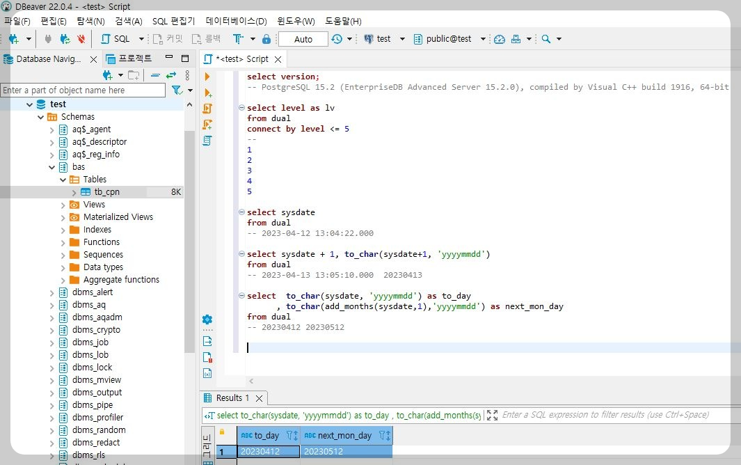 EDB Postgres Advanced Server 15.2를 설치해서 잠깐 테스트해 보았습니다.