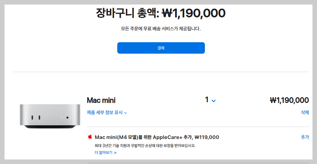 간단한 개발용으로 사용하기 위해서 M4 맥미니를 구매했습니다.