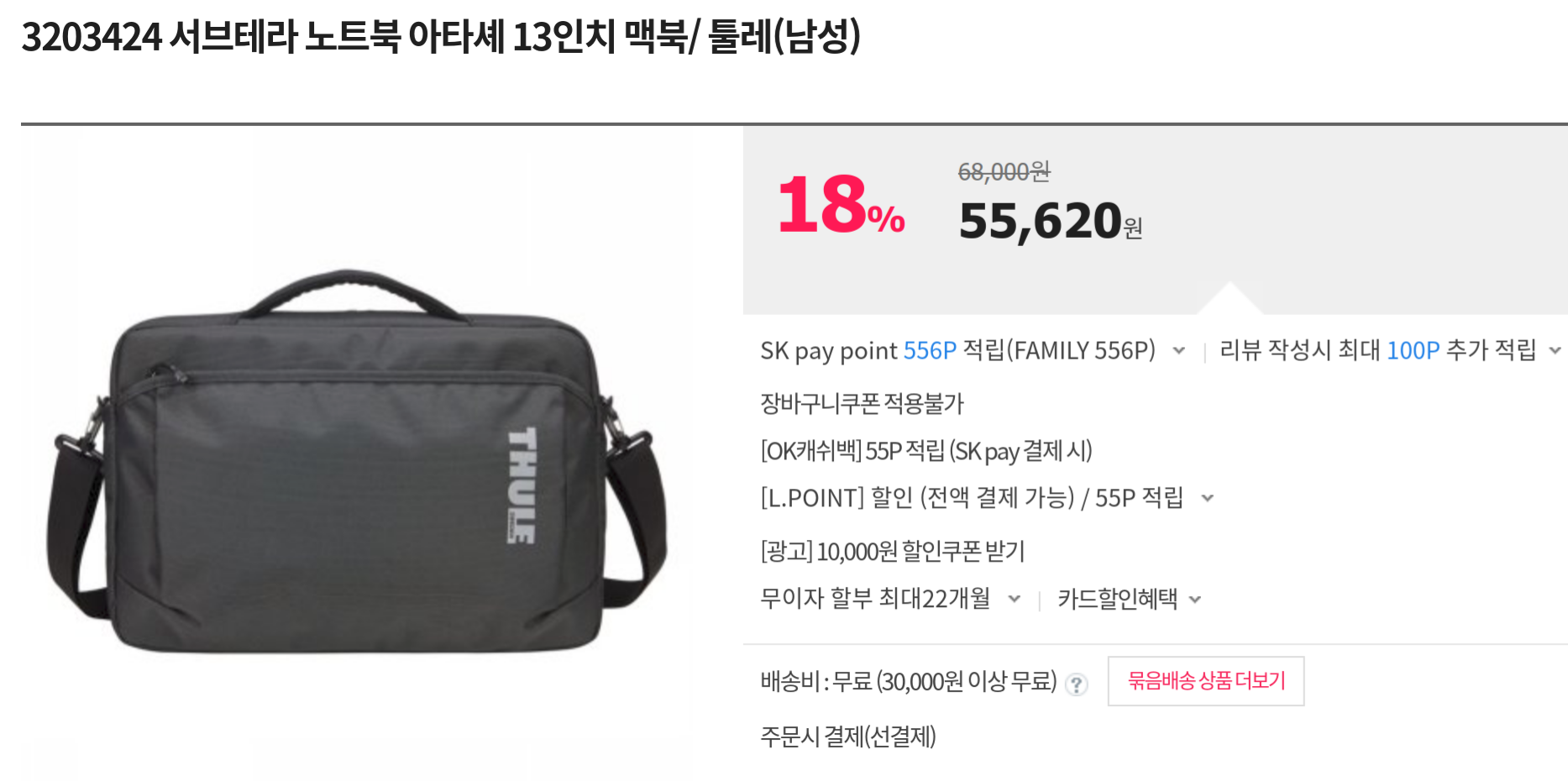"툴레 서브테라 노트북 아타셰 13" 가방이 가격대비 품질이 좋은 것 같아서 구입했습니다.