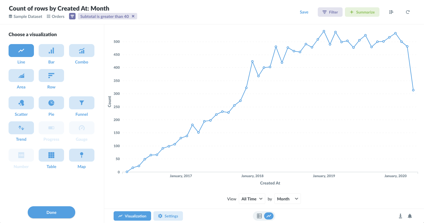 Ask your own questions Explore on your own Easily filter and group your data to find just what you’re looking for, all without ever writing a line of sql or having to wait on a co-worker. See connections It just takes a click to see individual records and