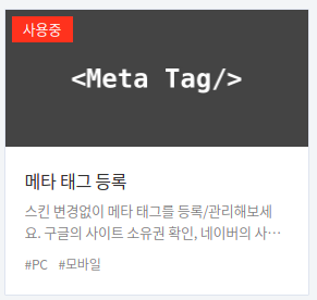 그래서 마지막으로 "Google Search Console" 과 티스토리 플러그인 메타 테그도 연동해 줬습니다.