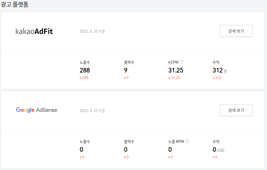 일 방문자가 400명 정도여서 수익은 크지 않지만, 배움에 대한 열정이 식지 않게 도와줄 수 있을 것 같습니다.