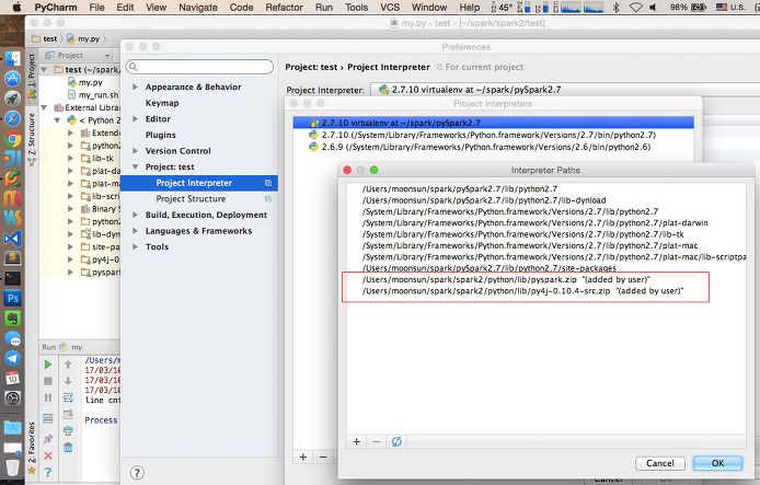 Spark를 설치하고, 개발툴로 pyCharm를 사용해서 테스트 코드를 작성해서 수행해 보았습니다.